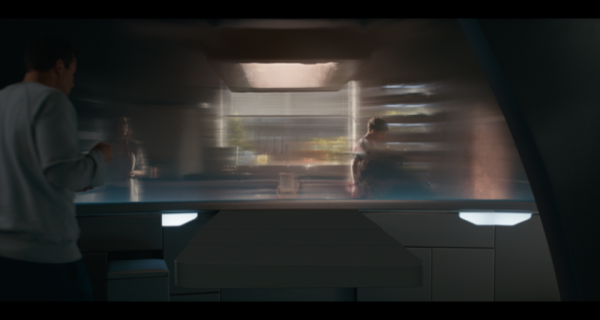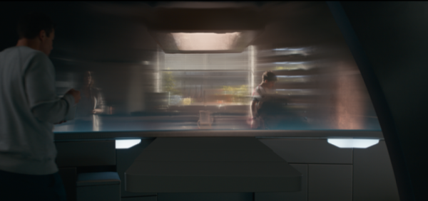 On board Aether, the crew has an interactive solar system chart, invented entirely by One of Us. The team started building it after the live action shoot of the scenes, allowing the performances of the actors and the script plot points to drive all of the design work for the sequence.